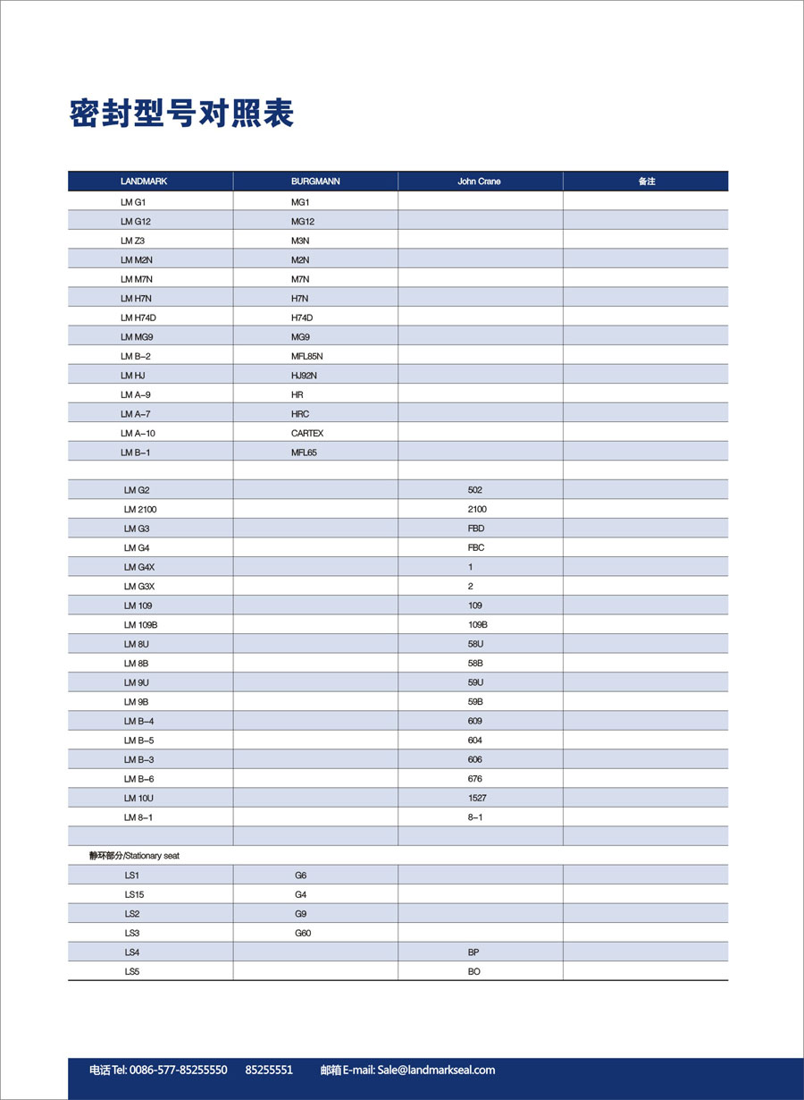 密封型号对照表
